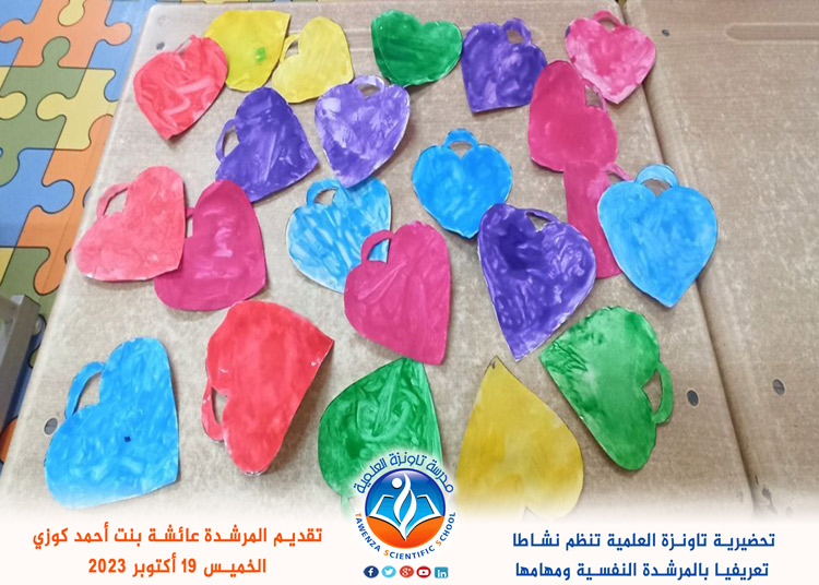 نظمت تحضيرية تاونزة العلمية يوم الخميس 19 أكتوبر 2023 نشاطا تعريفيا للبراعم من تقديم المرشدة النفسية “كوزي عائشة بنت أحمد” للتعريف بالمرشدة النفسية ومهامها في التحضيرية.